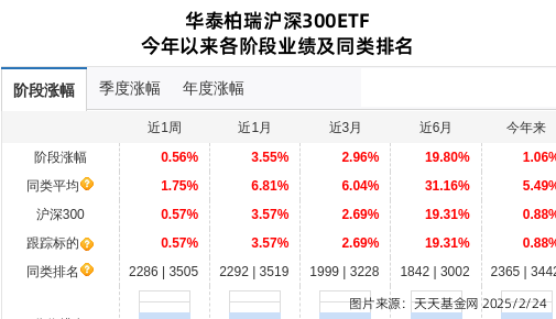 财报显示,华泰柏瑞基金旗下华泰柏瑞沪深300ETF为海螺水泥前十大股东,去年四季度增持。今年以来收益率1.06%,同类排名2365(总3442)。